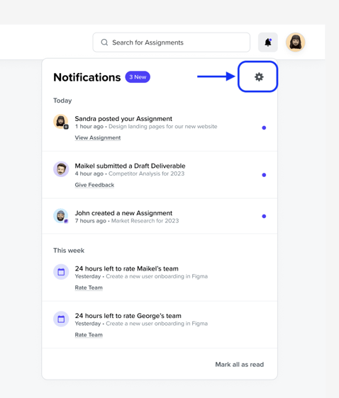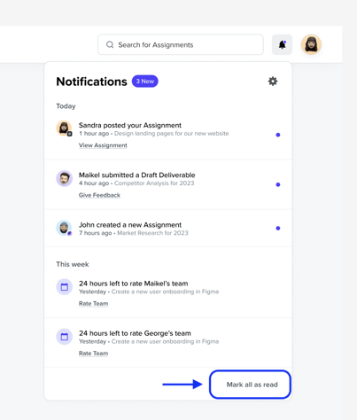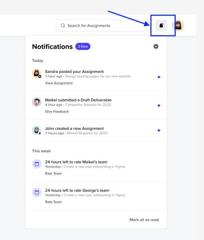 - Click on your 'bell' icon on top right corner. If there are any new notifications waiting for you, the bell icon will have a blue sign next to it